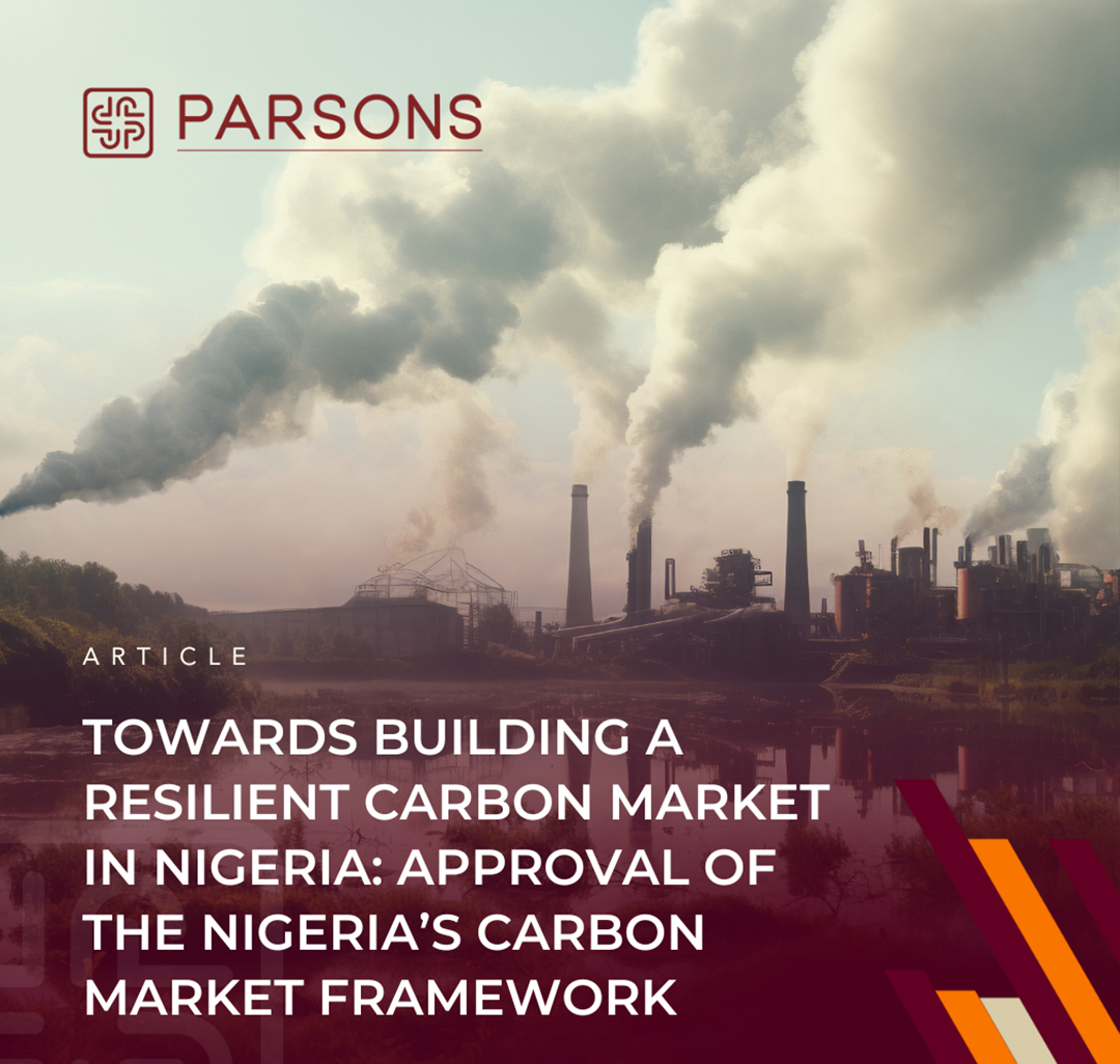 At Parsons, our lawyers have expertise advising on climate finance, environmental law, and regulatory compliance. We have experience guiding clients through complex regulatory frameworks and are well-positioned to assist investors, project developers, and other stakeholders in navigating Nigeria's carbon market. To explore opportunities in Nigeria's carbon market, reach out to us at info@parsons legal.com.